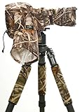 The LensCoat® RainCoat Standard (for DSLRs with small lenses up to 70-200mm f2.8 and 400mm f5.6) provides protection for your camera and lens from the elements while allowing you easy access to your camera and your lens controls. Constructed from lightweight waterproof, breathable poly tricot material, the RainCoat comes in Realtree® Max4 camouflage pattern. The RainCoat goes on quickly and easily. Cinch strap allows you to adjust the length of the cover and to keep it snug around your lens. It has a fold out arm sleeve for access to the camera controls. You can also access the camera through the rear opening and the lens through the velcro bottom closure.