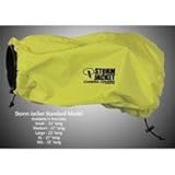 Storm Jacket Camera Covers are the most compact and portable camera protection you can carry with you everywhere you go . . . so you won't hesitate to use it anytime the camera is going to get wet, dirty, or sit in the sun. They are perfect for live shots setups, locker room celebrations, shooting in rain, drizzle, snow, and dusty or dirty environments. They aren't meant to replace heavy-duty covers and rain slickers costing hundreds of dollars when you really need that level of protection. Storm Jackets can be slipped on and off in less than 5 seconds, which means you'll actually use them when you'd otherwise just let the camera get wet because you didn't want to struggle with a bulky cover. When you're done with it, just shake it off, stuff it back into its zippered case, and shove it in a pocket. The cover and case together only weigh about 2-5 ounces depending on the model. The Small size fits any SLR with most lenses up to about a 80-200mm f/2.8. Here's how to tell if it will fit your camera: Measure your camera/lens from the rear of the body to the front of the lens. If it's 9" or less, this is the cover for you. The Medium size (recommended for most customers) works well for short lenses up through 300-400mm f/2.8. Measure your camera/lens from the rear of the body to the front of the lens. If it's 7"-15", this is the cover for you. The Large size is built for very long lenses. Measure your camera/lens from the rear of the b