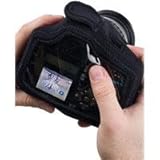 BodyGuard Compact CB "Clear Back" (lcbgccb)... The LensCoat BodyGuard is a camera body cover made from soft shock-absorbingneoprene, protecting your camera from the nicks, dings and scratches of accidental impact WHILE YOUR LENS IS ATTACHED. Like the BodyGuard it also keeps the camera body free from dust and dirt as well as protects it from the elements, AND it REDUCES SHUTTER NOISE. The BodyGuard CB has a clear plastic back and two plastic windows on top allowing you to use the camera with the cover on. Most buttons and switches can be accessed through the thin plastic back. The BodyGuard CB also has finger access slits on the side for additional access to buttons and switches. The shutter button can easily be depressed through the neoprene or by sliding you finger under the cover or in the slit. The BodyGuard CB goes on and off easily allowing you to change batteries and memory cards quick and easy and has access for flash and camera straps. Designed to fit compact camera bodies with lenses attached without the optional battery grip installed such as: Canon 400D, 450D, 500D 1000D, XTi, XSi, XS, XT, T1i Nikon D40, D40x, D50, D60, D5000 D80, D90 Also fits SLR bodies approximately 5"w x3.75"h x 2"d The BodyGuard is available in Black, Forest Green, Realtree Max4 HD, Realtree Snow, and Digital Camo.